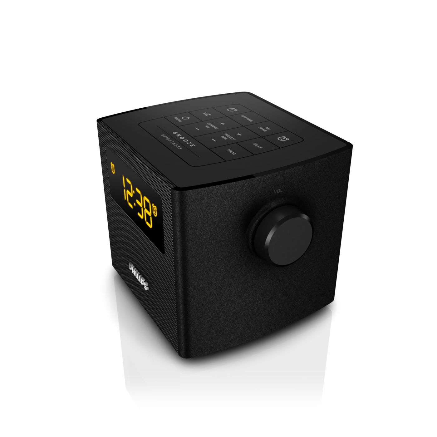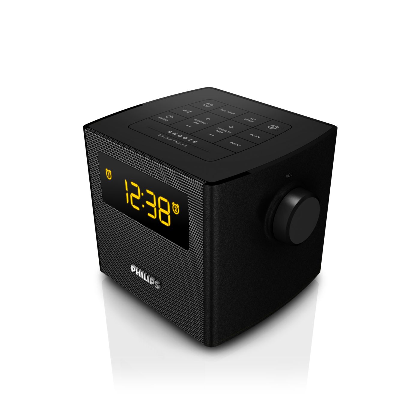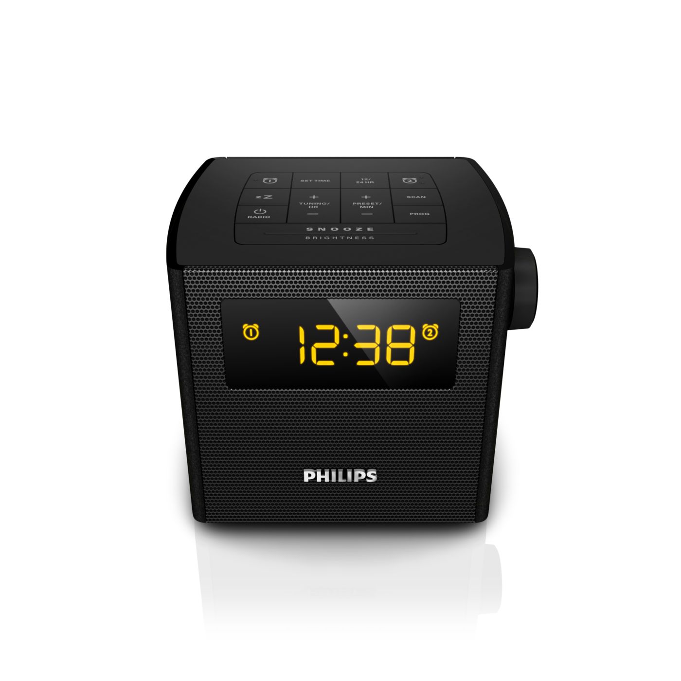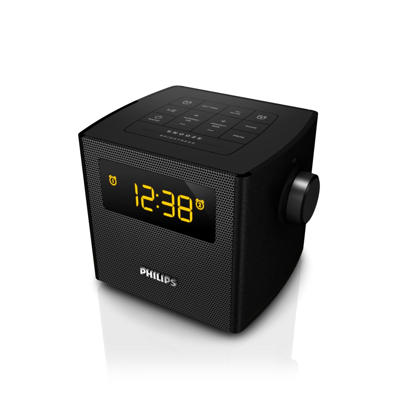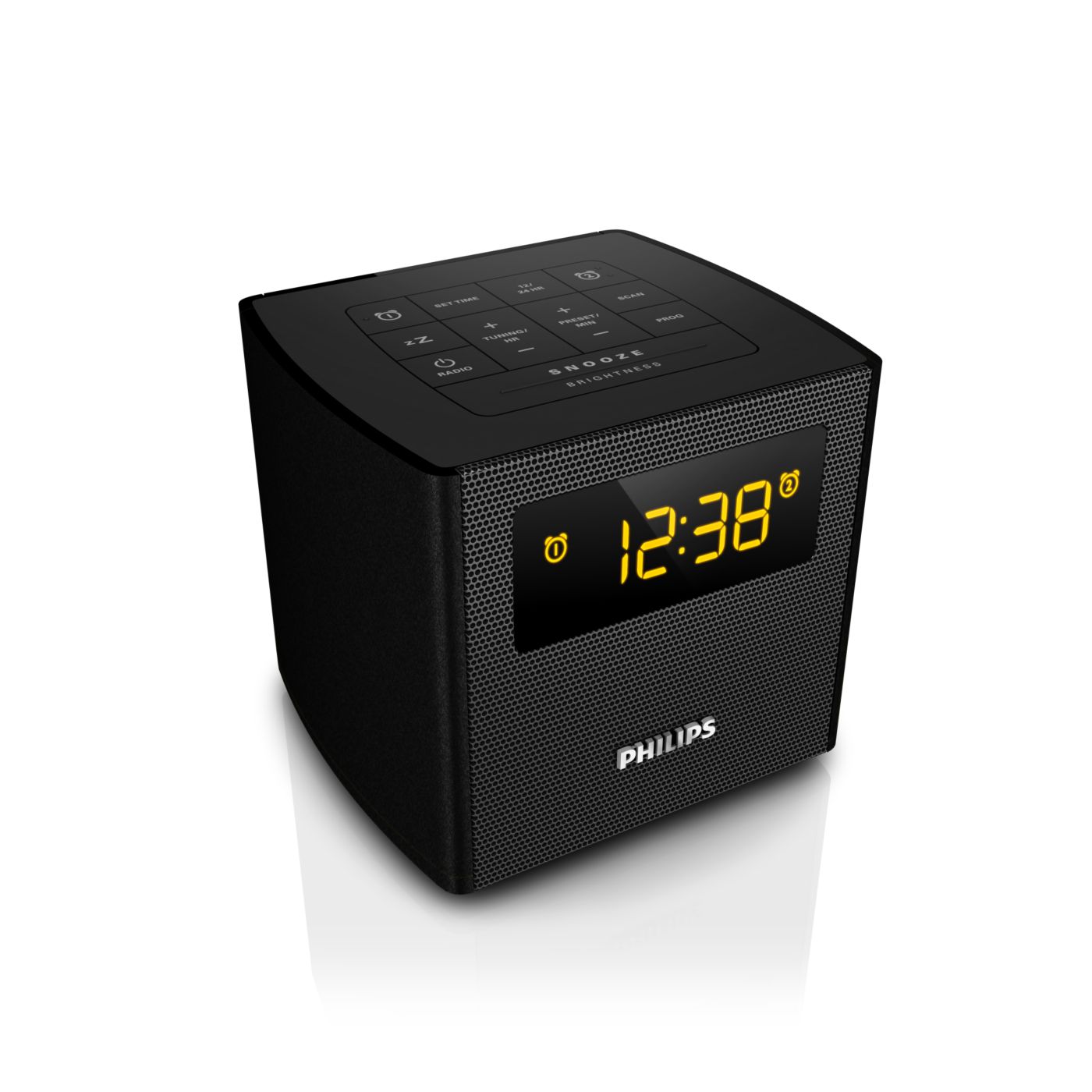 The Philips audio system comes with two alarm times. Set one alarm time to wake you up and the other time to wake up your partner.