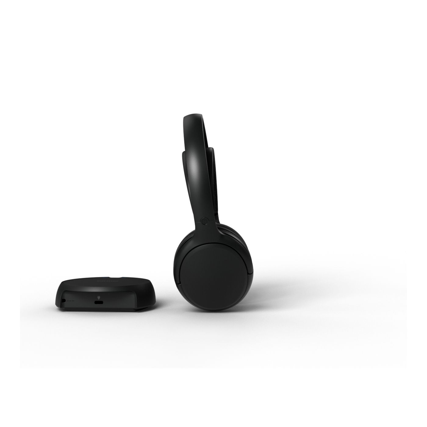These wireless TV headphones are so easy to set up, you can be ready to watch before the popcorn's popped! Simply connect the base unit to your TV using the included 3.5 mm cable. The headphones come pre-paired with the base unit, and you can control the volume via buttons on the ear cup.